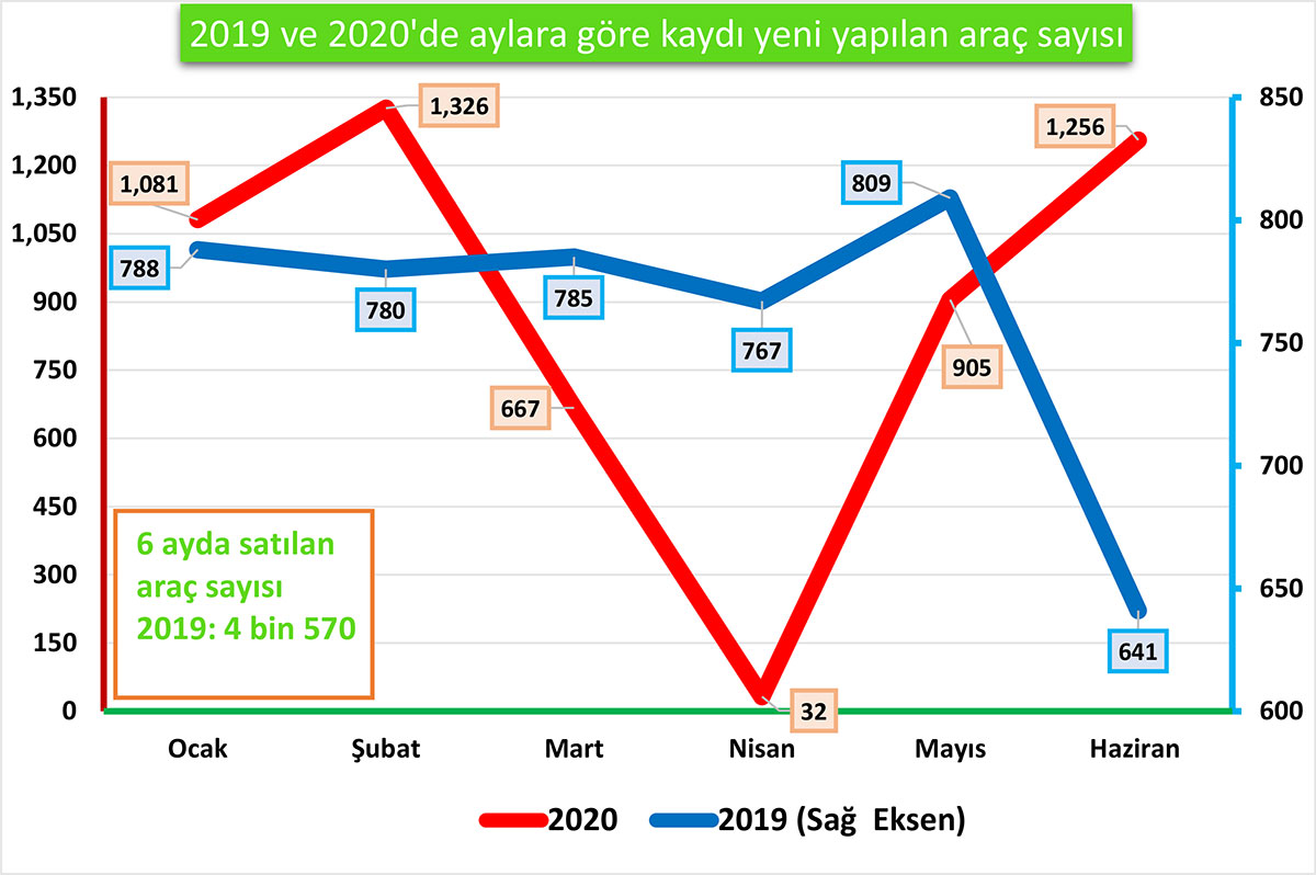 Bayındırlık ve Ulaştırma Bakanlığı’nın verilerine göre Şubat ayında bin 326 (1,326) yeni araç kaydı (yeni plaka takılan araç) yapılırken, bu miktar Mart’ta 668 araca, Nisan’da ise sadece 32 araca düştü. Mayıs’ta 908 adetlik bir satışla hızla yükselen sektör, Haziran sonu itibarıyla bin 256 (1,256) satış rakamını vurdu.