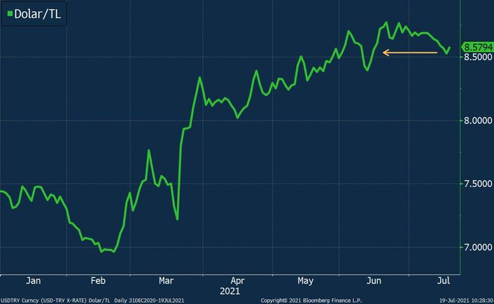 Dolar/TL, bayram öncesinde nakite dönüş eğilimi ve Türk Lirası’na olan talep ile 8.52’ye kadar gerilerken, sterlin/TL’nin psikolojik sınır olan 12.00’nin altına inmesi, vatandaşa bayram öncesi morali olmuştu. Ancak, TL’nin geçen hafta yaptığı ataklar yeni haftada son buldu.
