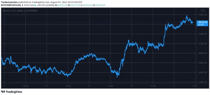 Sonraki günlerde, Bitcoin 40.000 doları geri aldı, ancak bu sefer tırmanmaya devam etti. Artış, Mayıs ortasındaki çöküşten bu yana neredeyse üç ay içinde en yüksek fiyat etiketi haline gelen 44.000 dolara ulaştı.