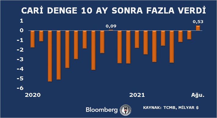 Cari denge Ağustos ayında 528 milyon dolar fazla verdi. Böylelikle Ekim 2020’den bu yana ilk fazla kaydedildi.