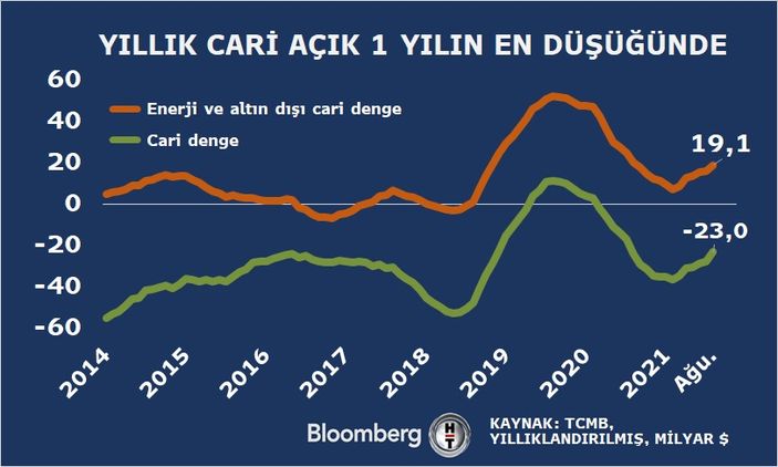 Ağustos’ta on iki aylık cari işlemler açığı ise 23,03 milyar dolara geriledi.