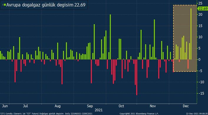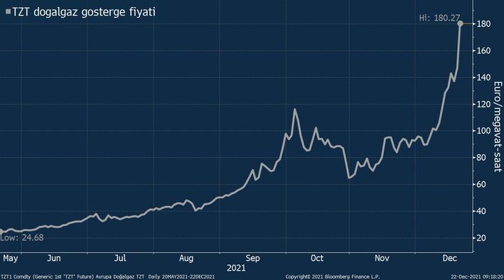 Avrupa’da doğal gaz vadeli kontratları son 10 günün 8’ini yükselişle kapatırken doğal gaz fiyatları da megavatsaat başına 180 euroya tırmanarak rekor tazeledi.