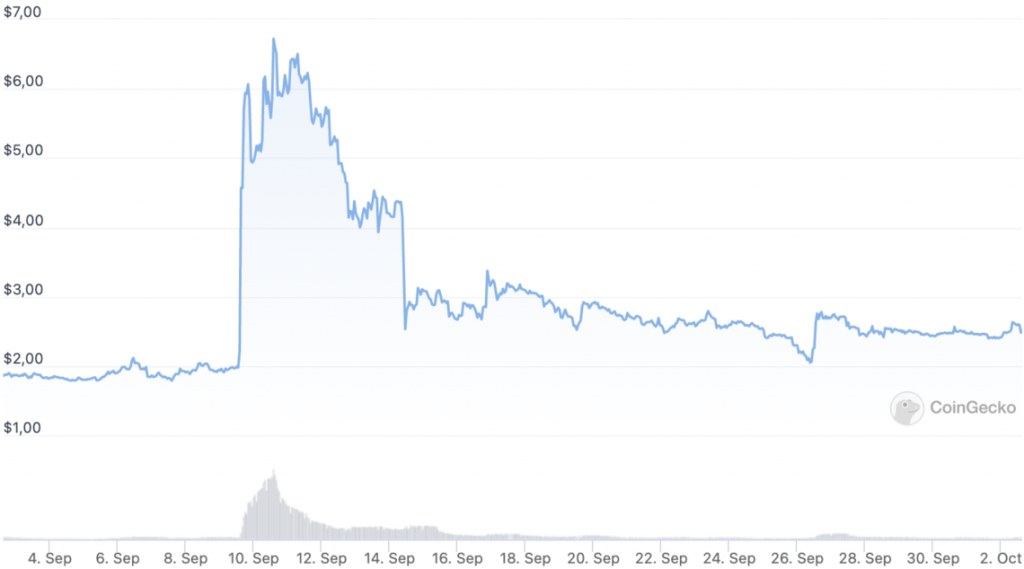 Eylül ayına 1,85 dolarla başlayan LUNC, ayın ortalarına doğru 7 dolara kadar çıkan büyük bir yükseliş yakaladı fakat bugün 2,48 dolar seviyesinden işlem görüyor. Eylül ayında yüzde 25,2 büyüyen LUNC’ un piyasa hacmi ise 216 milyon dolar.