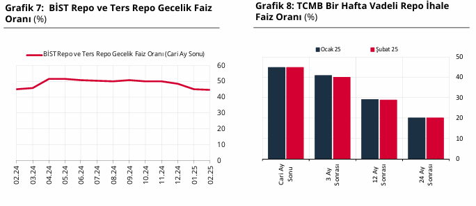 Ankette, BİST Repo ve Ters-Repo Pazarı’nda oluşan gecelik faiz oranı beklentisi bir önceki ankette yüzde 45,00 iken, bu ankette yüzde 44,79’a düştü. TCMB’nin bir hafta vadeli repo ihale faiz oranına yönelik üç ay sonrası beklentisi ise yüzde 40,91’den yüzde 40,00’a geriledi.